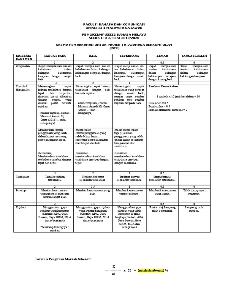 Pemurnian Skema Tugasan Projek Bahasa Sem 2 2019 2020 20 Feb 2020 Pdf